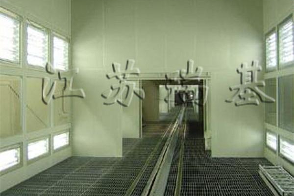 漆霧是噴涂過的涂料微粒子,它尚未干燥還保持有粘著性;而涂料塵埃是噴涂過的涂料粒子,隨著溶劑蒸發(fā)而呈粉狀并失去粘著性,且浮游在噴漆室內(nèi),再附著就成為涂裝不良的原因之一。 噴漆室屬于非標(biāo)設(shè)備,必須正確選用和精心設(shè)計制造,才能獲得理想的經(jīng)濟技術(shù)效果。噴漆室的基本任務(wù)是抽風(fēng)排掉噴涂過程所產(chǎn)生的漆霧、涂料塵埃、溶劑等。