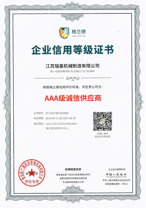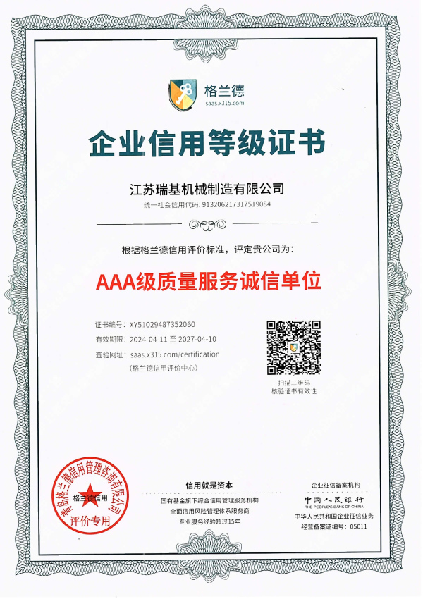江蘇瑞基機(jī)械制造有限公司本著“質(zhì)量為本,信譽(yù)至上”的宗旨,以“銳意進(jìn)取,開拓創(chuàng)新”的企業(yè)精神,摯誠敬業(yè)的服務(wù),為用戶提供更多產(chǎn)品及服務(wù)。